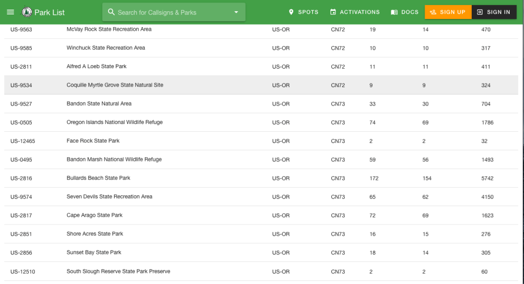 What I learned in conversation was that having a double park to call from really improves the attention “Spotters” give to the QSO. That means they generated several pileups and lots of contacts in a relatively short period. In this case that day, it was Bullards State Park and the Oregon Coastal Trail.