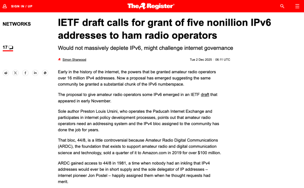 Amateur Radio Digital Communications (ARDC) is a private foundation that exists to support amateur radio and digital communication science and technology. We do this through making grants (including support for scholarship programs and research & development projects) and managing 44Net.